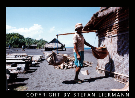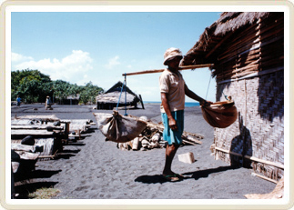 Unweit von Klungkung, im Kreis Darwan, befindet sich der Ort Kusamba, welcher für seine Meersalzgewinnung bekannt ist. So wird dort direkt am schwarzen Lavastrand das weiße Gold des Indischen Ozeans gefördert, indem das Wasser in Holztrögen der Verdunstung ausgesetzt wird. Durch den Verdunstungsprozess verflüchtigt sich schrittweise das Meerwasser und hinterlässt Salzablagerungen, die nach einer letzten Trocknungsphase zur Speisenabschmeckung genutzt werden können.